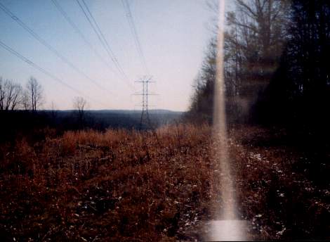 One of the ugly things about the park is this power line that bisects the Cobb's Ford area. This view is from Cox Mountain. The only good thing about it is the long vista to the east (towards Durham, NC).