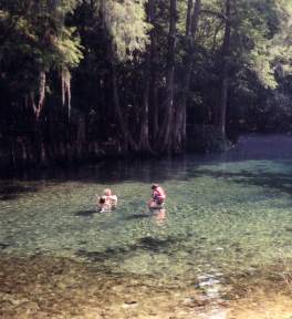 Some people swimming at Manatee Springs. The water stays close to a constant temperature, so in winter, Manatees come from the Suwannee River to the spring to stay warm.