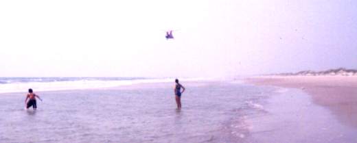 The beach at Bear Island is one of the best along the Atlantic coast. The sands are white, litter is rare, and the crowds are nearly non-existant. There isn't a condo or motel in sight. Camp LeJuene, a Marine Corps base, is nearby. Some military aircraft, such as this helicopter, occasionally fly over.
