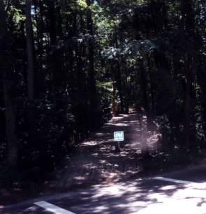 This is where the trail crosses a road, then goes onto a boardwalk through a swampy area.
