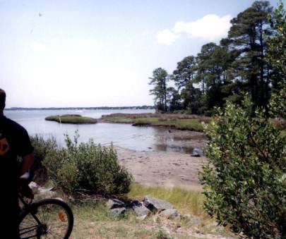 The trail ends at a brackish, wide creek. There's a salt marsh, and a small beach. Several boaters frequent this area.