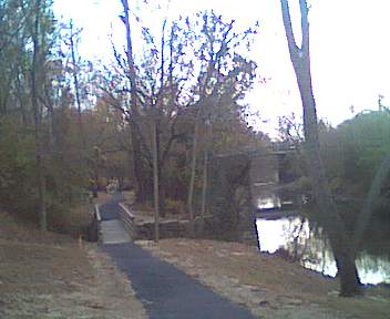 The town of Smithfield added a paved trail in 2001 along a portion of the Neuse River. It's a great place to ride bicycles, but the trail is kind of short. Both pictures are looking downstream along the Neuse River. The Business U.S. 70 bridge is visible in the distance.