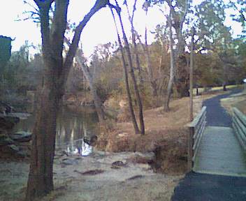 These are more pictures from along the Smithfield waterfront. For people who live farther away than we do, parking for this trail is along N. Front Street, one block off of Business U.S. 70. There are two small bridges along the trail, one over a small stream with a waterfall.