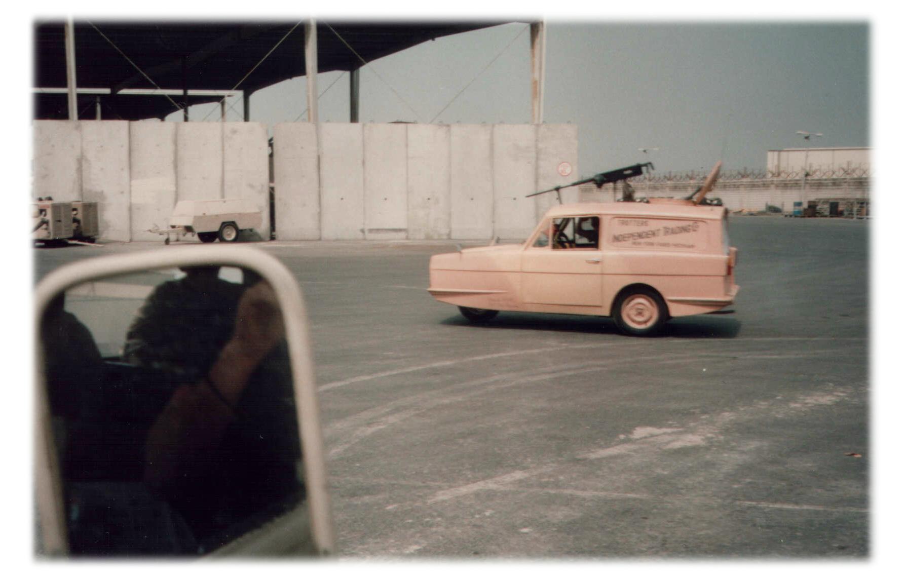 Even out in the Middle East you can't escape the British humor. Yes even Trotters Independent Traders was able to do a few "Cushty" deals.....you can see Del Boy at the wheel!!