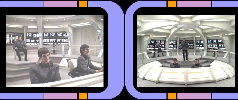 | The bridge of the USS Southern Cross is not a serious divertion from fairly standard Starfleet designs from the 2360's and 2370's. It has a central command chair for the Captain, a forward Flight Control and a rear Main Ship Display that doubles as Engineering and Environmental. The right door (from the Captain's perspective) allows one to enter Turbolift One, to access the rest of the ship. The left door opens into a small hallway with a turbolift and access to the Captain's Readyroom and Conference Lounge.