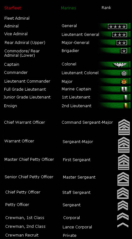 possesses no active Marine personnel, the ranks and uniforms are listed below.