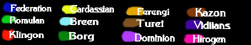 The Map below shows the current state of the Galaxy in our RPG. It shows where each race can be located and how much territory they own compared to others. It gives you the genral idea of where each race is.