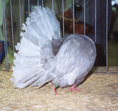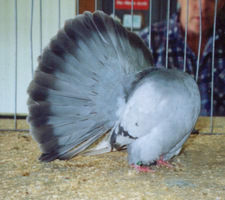 EUROPEAN DISTRICT of CFC, judge Domenic Zarlenga Largest show of 2002 season anywhere in the world Grand Champion, Silver by Rudi Fenzl 5th Overall, Checker hen by John Hartman 6th overall, Tailmark by John Hartman Powder blue shown by Martin Veldhuis AUSTRALIAN NATIONAL PIGEON ASSOCIATION 20th Anniversary Meet in Ipswich: judge Bob Vincent Grand Champion: dilute Andalusian YH by Howard Piper Reserve Champion, Blue YH by Dwight Wyatt Best Opposite Sex, Black OC by Col Bennet WESTERN CANADIAN FANTAIL CLUB Held at Edmonton Northlands: judge Bob Vincent Grand Champion: Tailmark yearling hen 428 bred by Gerry Robitaille centre: another view of 428 Reserve Champion and Best Young: powder silver YH by Harold Junck EASTERN FANTAIL CLUB judge Michael Boyd Held with National in Conneticut Grand Champion: Blue pied by Ben Ferber Reserve Champion: blue by Arlene Hundrup 2nd Reserve silver OH by Ben Ferber WESTERN FANTAIL CLUB judge Gene Altpeter Grand Champion: Silver OH by Dennis Soares Reserve champion ash red yearling cock from Bob Vincent MID AMERICA FANTAIL CLUB judge Brian Pogue Grand Champion silver OH by Bill O'Dell Reserve silver YH by Bob Vincent Second reserve cream YC by Jim Ellebracht DIXIE FANTAIL CLUB judge Dave SmithGrand Champion, blue YC bred by Diemer/ Bradford Reserve Champion, by Kenneth & Brenda Garmon GREAT LAKES FANTAIL CLUB Grand Champion, Blue YC bred by Diemer / Bradford Reserve Champion, Silver YH by Stan Osterbaan Second reserve, Andalusian from David Smith