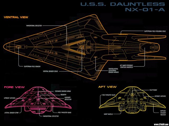 Finding no lifesigns on the ship, an away team is sent to secure the U.S.S. Dauntless. On board they find the helm is set for auto-navigation, and it's equipped with a new engine configuration called a quantum slipstream drive. The rest of Starfleet's message says the Dauntless has been sent to bring the crew home. Janeway orders the crew to modify Voyager with the slipstream technology so they can bring it along, but she also senses something isn't right and asks Tuvok to keep an eye on Arturis.