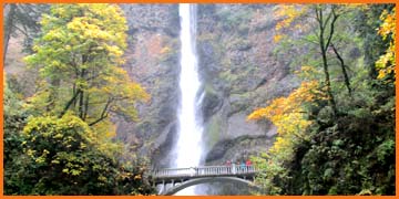 Though actually a series of falls - the upper and lower - Multnomah Falls is easily accessed via foot trail. Between the two drops spans the Simon Benson Bridge, which affords visitors a good view of the upper falls. Turn your back on it and a stunning panorama of river and mountains unfolds before you.