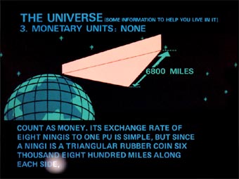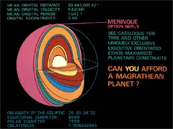 Orbiting this at a distance of roughly nintey-eight million miles is an utterly insignificant little blue-green planet whose...life forms are so amazingly primitive that they still think digital watches are a pretty neat idea.