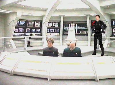 To the left of the battle bridge command station is the Communications station and to the right is a systems monitor console. The console located behind the Captain and to the left has been designed to serve as the Battle Sections Executive Officer's station. Primarily this station is used to monitor all internal systems and provides control of the stardrives offensive and defensive systems. Parallel to this station is the Engineering Sections Science station.
