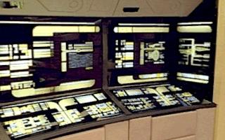 The inward facing and final control panel on the Bridge of the Enterprise is the Operations Management Station. Many shipboard operations involve scheduling resources or hardware (such as power or the use of sensors) that affect a number of departments. In many such cases, it is common for various operations to present conflicting requirements. It is the responsibility of the Operations Management Officer to coordinate such activities so that mission goals are not jeopardized.