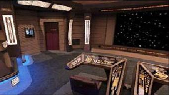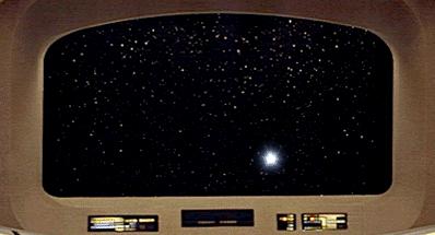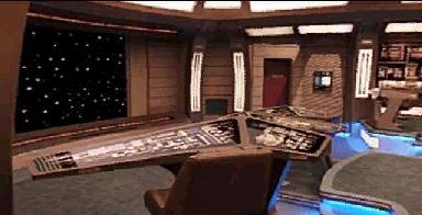 At the very front of the bridge chamber is located a large (5.0 x 3.0 meter) visual display panel. This main viewer is generally used to display the output of one of the forward optical scanners, but can easily be reset for any other visual, informational, or communications use. When in communications mode, the main viewer shares the use of a dedicated sub-processor, which permits near-instantaneous conversion and display of nearly any visual communications format. The main viewer display matrix includes omni-holographic display elements and is thus capable of displaying three-dimensional information, however it is typically set to two-dimensional imaging.