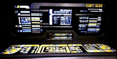 To the port side of the Flight Control Officer, also facing the main viewer, is the Systems Control Station - which is identical in size and design to the Helm control station. The Systems Control station is a highly secure station on the Bridge that is directly connected to the Engineering computers, the Flight Control processors, and the Tactical systems. This consoles primary function is the observation of shipboard systems, however it is not limited to just these functions. In the event of an emergency situation aboard the Enterprise this station can be used to control any function aboard the ship if necessary. In addition this station has priority linkups to the Federation Galactic Memory bank on Memory Alpha and a direct link to the Sensors of the starship for hazard monitoring.