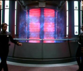 Should the main engine room need to be isolated from the rest of the ship this compartment has been designed to be fully separated from the rest of the ship. In the event of a catastrophic emergency isolation doors lower to separate the two facilities and forcefields go up around the entire facility. When isolation protocol is engaged nothing can access the primary engine room without the approval of the Enterprise's Chief Engineer and Commanding Officer.