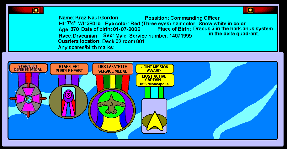 academy data: Born on Dracus 3 in the hark-anus system in the delta quadrant.