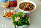 during summer, Hue beef noodle soup is served with soy bean, mint,
