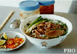 Vietnamese soup. Pho is a noodle soup with either beef (either tai,