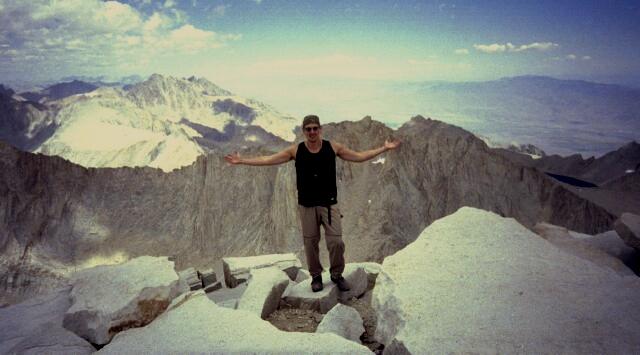The picture above looks south along the crest of the Sierra. Below is the Team ... amid some 20 or so other enthusiests with whom we shared the summit (around noon on July 26th, 2001).