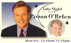 Conan from the sex tapes. .........a tighter shot A drawing of Conan ......another ......another ......and another An animated thingy of the Late Night logo A pic of Conan with a blue background More to come..... The old bike logo Seal of good practice.... TV dinner..... Late Night lunchbox I'd play that guitar... Which side to pick... Run fast, run far..... Taaaaaaaake me out to the baaaaaaallgaaaame A *good* pic from Conan speaking at Harvard's commencement Conan with Lynn *stab* Conan's '100 most eligible bachelors' pic Conan singing Jay Z's Big Pimpin' in a promo for the MTV Video Awards Conan and Hudson sharing an ice ceram cone. Conan's Snap.com club picture CONTINUE THE MAGICAL MYSTERY TOUR- go to my second page of pictures...