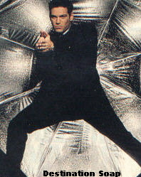 Eddie with "Sunset Beach" co-star Lesley Anne-Down (Olivia) and Jay Leno during a 1997 "Tonight Show" segment