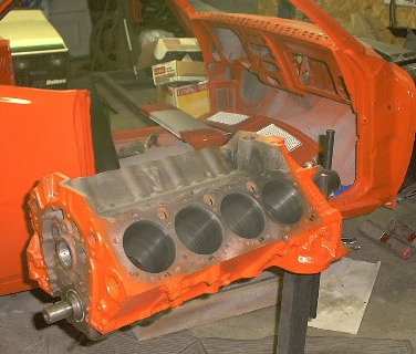 I finally got the massive 327 engine in with the turbo 350 tranny on it.