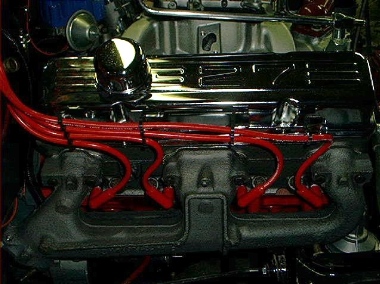 Spark plug wires are routed.