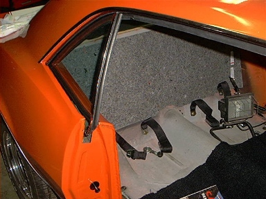 Quarter window's in with window weatherstripping, rear seatbelts are in but later found out