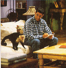 Ross got Marcel from his friend Bethel who rescued the monkey from some lab. Marcel had always loved playing with Monica's kitchen tools and Monica had always hated Marcel. When the gang played poker at Ross' apartment, this smart capuchin monkey put the CD in the CD player and played the Lion Sleeps Tonight. As I have learned, this is, by the way, the smartest monkey (correct me if I'm wrong). He even takes the remote control of Monica and Rachel's TV and turned it to SAP, which makes the people on TV speak Spanish. As time went by, Marcel matured. He started humping things and even "played" with Rachel's Curious George doll. They had to give him to San Diego Zoo. Later on, Ross found out that Marcel landed a career on acting. He's making a movie called Outbreak II - The Virus Takes Manhattan. To get Marcel's attention, Ross and everybody sang The Lion Sleeps Tonight. Ross spent onde day with him and that was the last time we saw our favorite monkey, Marcel.