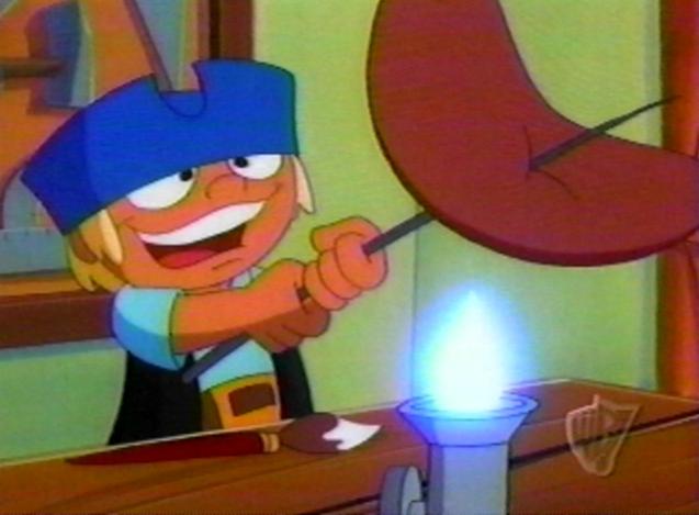 Froggo roasts weenies over Franklin's bunsen burner