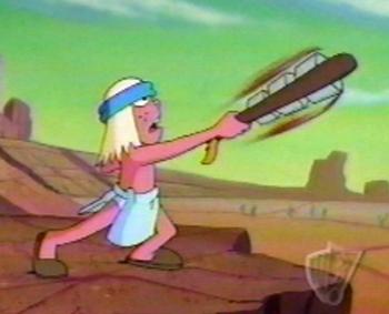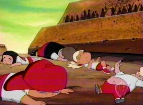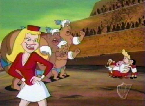 Cho-Cho and Charity attempt to bring down an Aztec giant
