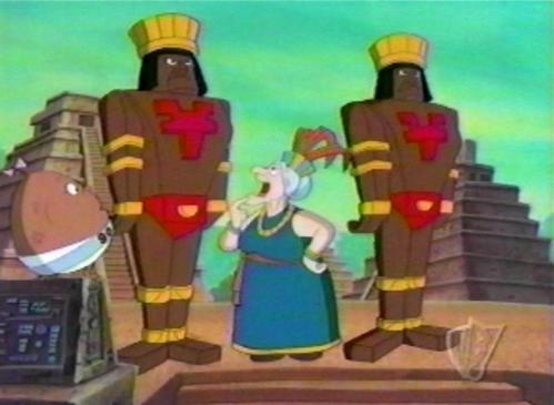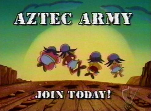 Mesoamerica Introduction Montezuma's Revenge (song) The Mayan Solar Calendar This Old Scarifical Well [commercial break] The Order of the Eagle Pok-to-Pok: Mesoamerican Futbol [commercial break] Miss Information Intro Inca Shopping Network Closing Images from the episode:Toast of the Aztec Order of the Eagle