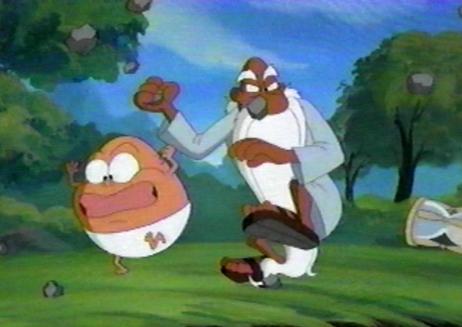 Big Fat Baby and Father Time fight rock-hurling fishies