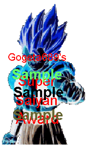 Awards for you ![]() The Super Saiyan award goes to a site with these requirements: -A DB or DBZ or DBGT site -No illegal files or porn -Fair info and pics This one is very easy to get and almost all sites that apply for it will get it.