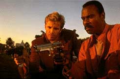 The first episode also introduced us to the girls in the detectives' lives: Jodi, Chase's girlfriend, who works at the art gallery where Chase's metal sculptures are often displayed, and Kendra, August's wife, as well as Captain Jensen, the detectives' high-tempered superior who they continuously aggravate with their penchant for destroying vehicles, buildings, and other things during their pursuit of criminals. Det. Sam Richardson, head forensics analyst Arnold Cragmeyer, forensics assistant Annie Mason, police psyhcologist Dr. Judith Sands, and Det. Jack Lawson were among the people who assisted Chase and August from time to time on their cases. Throughout the first season, Chase and August encountered a variety of criminals, including a gang that stole million-dollar computer chips, a deranged young man who murdered female tourists, and a man who stole human kidneys to make money on the black market. At the same time, the detectives dealt with personal issues, like the time August tried to stop a young boy from killing the gang member responsible for the death of the boy's brother, or the time the detectives worked a murder case in which the prime suspect was Chase's cousin, a mental patient. Another personal issue for Chase was that Jodi had never been happy with Chase's job. She tried numerous times to get him to quit the force and concentrate on his sculpting. They tried to work things out, but in the end, Jodi left Los Angeles for a job with an art museum in Texas near the end of the first season. |