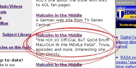 | AUGUST 31, 2003 Holy cow! Are any of you aware how long its been since this site has been updated? Answer: A really really long time. This site is getting relatively old (almost 4 years, to be exact!). Jeebus, thats an eternity in the internet world. In short, this website rules. Sincerely, e-mail: moxibrat@hotmail.com as seen on about.com!!! "EmBaRaSsInG," but hey, you take all you can get (: |