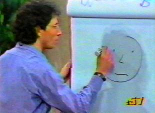 males vs. females, headed by the contestants. The celebrity guests and the contestant would each take turns going up to the board and attempt to draw a word or phrase that was shown to them on a small card. Their team would then try to guess what it is he/she is drawing before the alloted time is finished. Many times this would bring much laughter at the guesses and the person's 'artistic' renderings!