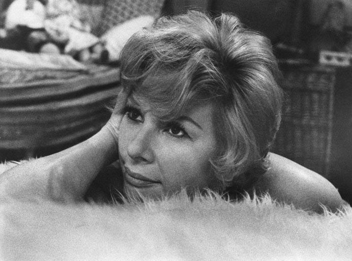 As Mrs. Gold looks on in rapture, and Gig in horror, Panda performs the routine she has been "perfecting" for years - a fifth rate imitation of Rita Hayworth singing "Fire Down Below" and a tenth rate impersonation of Marlene Dietrich's "Falling in Love Again." Although Mrs. Gold tells Panda her act was "pithy," Gig's reaction is somewhat more direct: "It stinks."