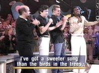 In a group sing-a-long to 'My Girl,' Charles sings with Bill Bellamy from MTV, Ingo Rademacher from General