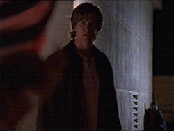 CUT TO ED WALKING ACROSS THE ROOF. HE STOPS BEHIND A MAN. THE MAN TURNS.