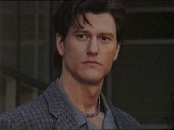 KEVIN RACES OVER TO THE FUSE BOX AND SHUTS THE POWER DOWN, BLACKENING THE ROOM JUST AS TOM BREAKS THROUGH THE DOOR. TOM GLANCES AROUND IN THE DARK, THEN TAKES A STEP FORWARD, INTO THE LIGHT FROM OUTSIDE. HIS BEAUTIFUL FACE HANGS IN THE DARKNESS.
