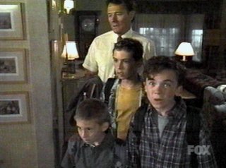 Malcolm really wants to get a pair of blades. Francis has some, Reese has some. But in order to get them, they had to go through hours of "torture" with Hal. See, his rule is, before you can get skates, you have to learn from him how to be a skating dude. This includes practice of various disco moves, etc. After putting up with so much of Hal's crap, Malcolm gives up. Wanting to go outside and play street hockey with Reese and some other kids, Malcolm goes for the skates. (Which he's not supposed to use until he's gone through ALL of Hal's training.) Hal catches him and tries to take them away, but WOW! This kid has a potty mouth! Ya don't actually hear Malcolm say it, but we can assume he basically told his dad to go take a hike, just in a really harsh way if you know what I mean. Hal then writes a 10-page list of all the worst words and phrases he can think of. After making Malcolm say them outloud, they make up, and Malcolm can then be seen kicking some serious butt in streethockey. He even used some of Hal's moves. The other storyline is that Reese came rollerblading in the house and must have rolled in something nasty outside. (Wanna take a guess as to what?) Lois yells so loud she throws her back out. Hal can't get her to take any pain medicine because she said that it makes her all loopy and she has to run the house. And, the other storyline is about Francis. The cadets have to go on a 2-day survival mission, bringing as little as possible. Right before the trip, Francis fakes a horrible backache, and is left at the Academy. Whoops, he kinda blew his cover when the cadets came back and found him playing with the fire extinguisher. They tied him up and put him in the woods for 3 days. An extra day for lying.