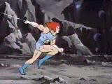 And the Claw Shield isn't even bending. His left arm must not be as strong as his right arm. Err, right, Snarfer. Anyway, this proves that the Sword of Omens is not Lion-O's only weapon. Right. Sometimes he shows some creativity and uses the Claw Shield before falling back on the Sword. |