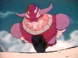 Leading the Beserkers through stormy seas and and bizarre episodes, meet Hammerhand. I'll give you a wild guess as to how he got his name. Hammerhand is the only one with a ray of intelligence in the Beserker group, and it's barely a ray at that. He thinks like a pirate, talks like a pirate, and acts like a pirate. Yes, he's a pirate at heart. But his crew isn't quite up to par, so he puts up with a lot to get what he wants. Hammerhand is an interesting character because in one episode, he's dead. The ghost of Hammerhand is infused into a fake Panthro to give the duplicate a fierce personality. This is after Hammerhand's first appearance in the series, so at least the audience is familiar with him, but he also appears in later episodes and is not dead. Why? How? Don't ask me, I'm just a tiger. Apparently, rumors of Hammerhand's death were greatly exaggerated. But don't tell that to the Wollows. Their village was destroyed by the dead one. Not necessarily a bad thing, though... |