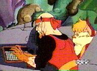 Bats seem to do it. Yeah, but bats have sonar. Lynx-O's just sitting there. It could be that Snarf is flying the Skycutter. Is that an improvement? Good point. I have a question. Why is Uncle Snarf in all of these pictures? Hmm. I don't know. Maybe he's working on his mechanical skills and Lynx-O seems to be around to help out? Sorry, Snarfer, I really don't know. Weird. |