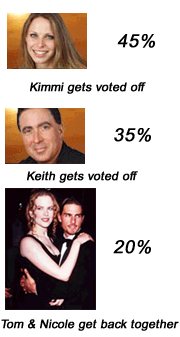 A third episode of Survivor has come and gone (except if you're on the West Coast...in which case, spoilers ahead). 'Ogakor's' Maralyn "Mad Dog" Hershey was the third person to be voted off her tribe, and if you will read "Who Will Be Next?" directly below you, you will see how completely clueless I am in terms of predicting these things. However, if you look on the right side of the page, to the pictures of the Survivors and look towards the bottom, you will see the 3 people to be voted off the island, have their pictures directly below one another, and in order. I made that graphic 2 days before the first Survivor episode even started, and if I hadn't been emailed about it, I probably wouldn't have noticed. *Eerie music* What do you think about the 16Castaways.com curse? Is Mitchell next?