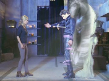 "Oh, Buffy..." Buffy walked into Angel's open arms, letting out an exasperrated gasp. She was still clutching the sword. Angel held her with pure pleasure. "I feel like I haven't seen you in months." Buffy tightly closed her eyes, trying to hold back tears as she revelled being his arms again. "Everything's so muddled. I... oh."