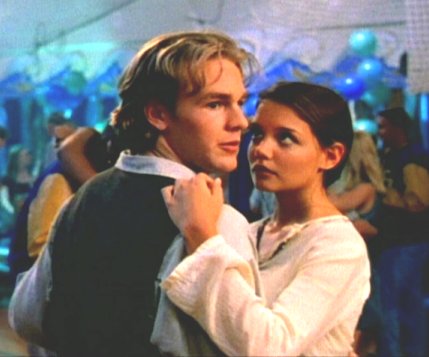 "Hey, there's Jen with Cliff," Dawson said looking around. Joey was still hanging onto his arm. "Great," she muttered under her breath. "Let's go say hi," Dawson said and pulled her over. They politely said hi and Joey was surprised when Dawson excused himself and Joey to get some punch very shortly afterwards. They had been at the dance for a couple of hours and were both having a pretty good time. They hadn't danced very much, but that was Joey's choice. Joey was surprised that Dawson hadn't watched or even mentioned Jen all evening. She wished that she could tell Dawson how she felt. He looked so good. He was with her, paying attention to her, yet she couldn't tell him that she loved him. She wanted to kick herself. Joey's ears perked up when she heard the next song. It was "Kissing You." She heard the opening on the piano and stood up.
