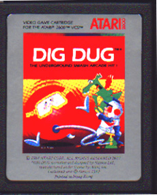Dig Dug is another of my favorites. You are Dig Dug, the underground miner. You have a jet powered shovel which you use to dig tunnels underground by moving up, down, left or right through the dirt. Your enemies are the fire breathing, dragon-like Fygar and the balloon-like Pooka. Your goal on each level is to destroy all of the Fygar and Pooka by either pumping them up until they explode or walking under a rock so that it falls on them and crushes them (be careful, the rocks can cruch you too!). There are four different levels (colors) of soil on each screen and the deeper you are when you destroy an enemy, the more points you get.  You can also pick up vegetables (which appear in the middle of the screen throughout the game) for bonus points. This game is very common and can be easily found for cheap.